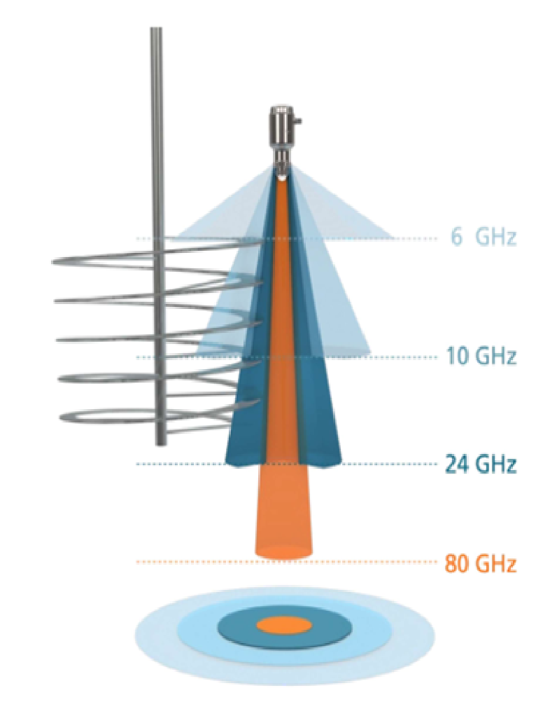 80G radar level meter: Its modulation frequency is generally between 78GHz and 82GHz, with a wavelength of approximately 3.75mm, belonging to the millimeter wave band.