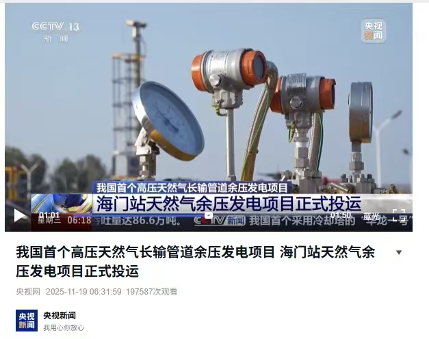 China's first high-pressure natural gas long-distance pipeline pressure energy power generation project, the Haimen Station Natural Gas Pressure Energy Power Generation Project, has been officially put into operation in Nantong, Jiangsu. This project realizes the efficient utilization of pressure energy resources during high-pressure natural gas transmission, marking a breakthrough in China's comprehensive energy utilization in long-distance pipelines.