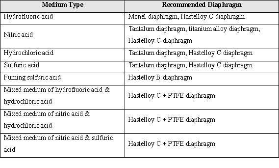 Diaphragm Selection Guide for Acid and Mixed Acid Media