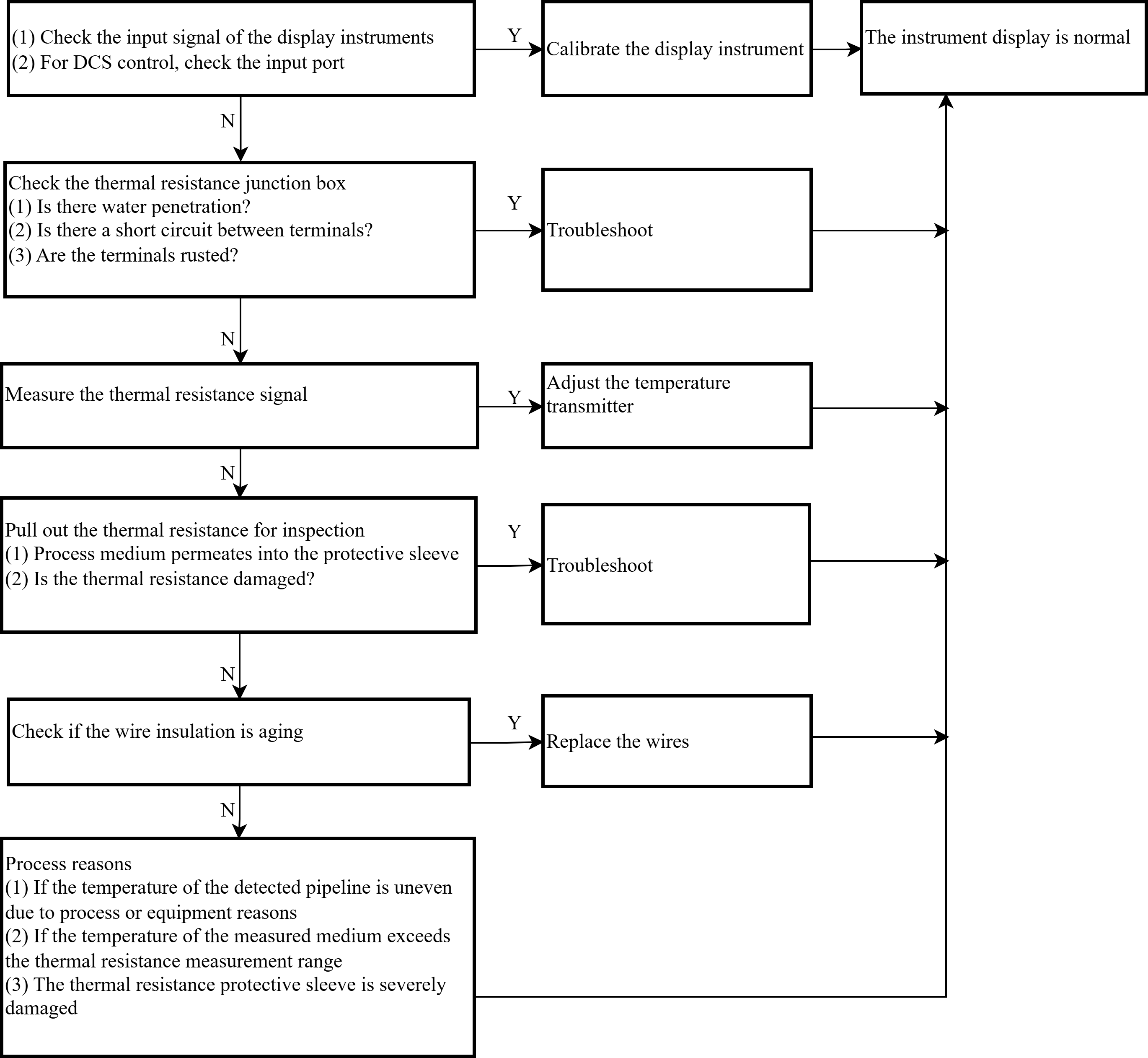 (2) Sudden decrease in temperature reading:This fault is mainly triggered by short circuits in thermocouples/RTDs or wires, or temperature sensor malfunction. Troubleshooting steps: